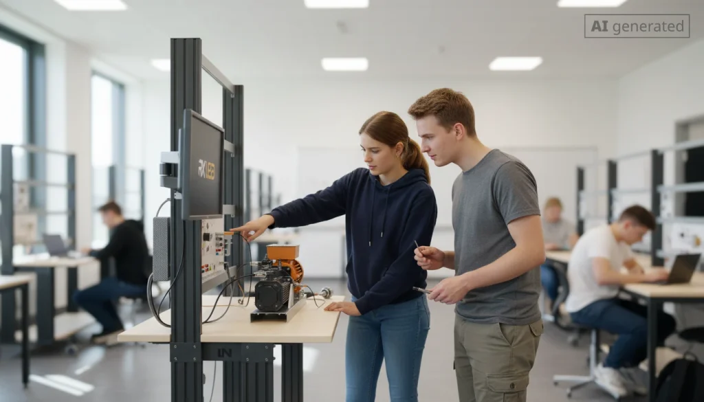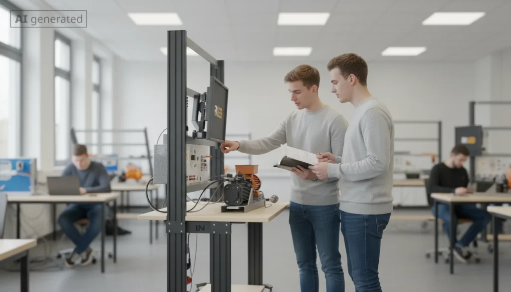 In der modernen Industrie sind ungeplante Maschinenstillstände teuer und stören Produktionsabläufe. Die vorausschauende Wartung – Predictive Maintenance – bietet hier eine entscheidende Lösung. Mit dem Lucas-Nülle-Plattensystem PanelTrain erhalten Lernende eine vollständige Fachpraxis-Ausstattung, um die Grundlagen von Condition Monitoring und Predictive Maintenance zu erlernen. Dies geschieht durch eine praxisnahe, datengestützte Schwingungsanalyse an einem mechanisch manipulierbaren Getriebeantrieb.