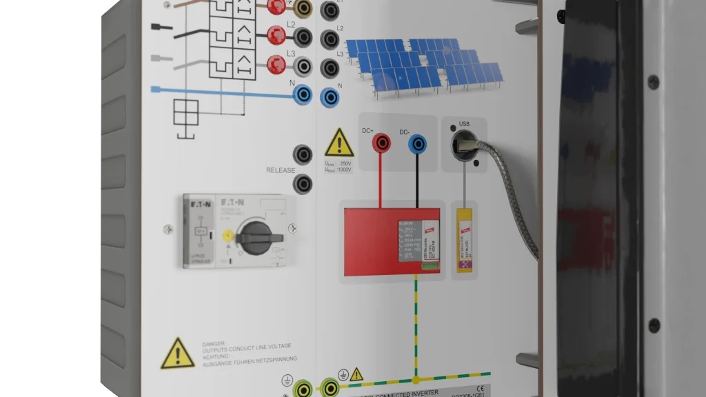 Mit diesem System beherrschen Lernende moderne Photovoltaik-Anlagen im Netzparallelbetrieb umfassend. Von der Solarfeld-Emulation bis zur präzisen Netzsteuerung profitieren sie von realistischen Szenarien und direkter praktischer Erfahrung.