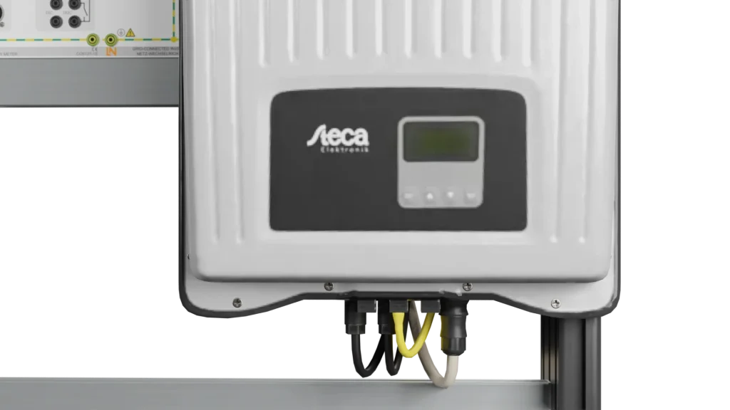 Dieses System bildet realitätsnah alle Techniken ab, die für eine intelligente Netzeinspeisung unerlässlich sind – zum Beispiel die Leistungsbegrenzung (Derating) des Wechselrichters. Lernende erarbeiten sich diese Fähigkeiten direkt im Labor.