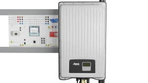Ein moderner dreiphasiger Industrie-Netzwechselrichter erfüllt die Anforderungen der Netzintegration. Er ermöglicht die Parametrierung und Analyse netzstabilisierender Maßnahmen wie ferngesteuerter Leistungsreduzierung (Derating) sowie die Bereitstellung induktiver und kapazitiver Blindleistung.