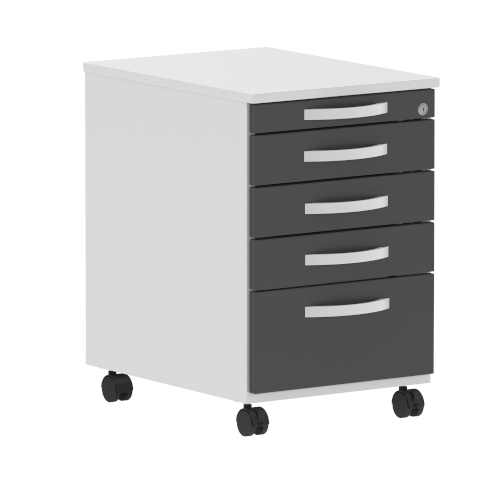 Roll-Container, 4 Schubladen + Utensilienschublade, Zentralverriegelung 430×666
