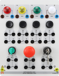 Universelle Schaltereinheit mit allen notwendigen Schaltern, Tastern und Meldeleuchten zum Schalten von Kleinsteuerungen und Schützschaltungen (230V)1 Not-Aus-Taster, 2 x Öffner4 Taster 1S/1Ö, schwarz1 Hand – Automatikschalter1 Hand-Automatik-Schlüsselschalter1 Meldeleuchte, rot 230V AC1 Meldeleuchte, grün 230V AC1 Meldeleuchte, gelb, 230V AC1 Meldeleuchte, weiß, 230V ACNennspannung 230V ACEin-/Ausgänge auf 4 mm-SicherheitsbuchsenAbmessungen: 297 x 224 x 160 mmGewicht: 1,0kg