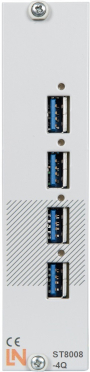 Dieser 4-fach Hub als 3HE-Einschub ermöglicht den Anschluss von bis zu 4 USB-Geräten an einem PC.