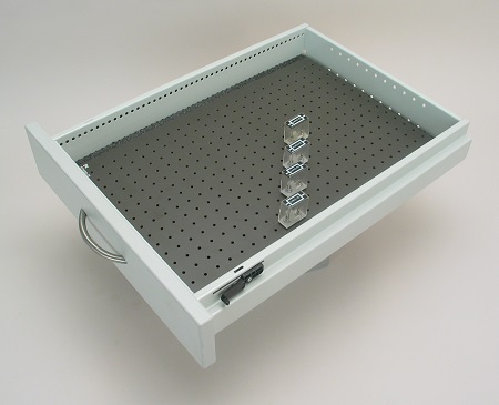 Schubladeneinsatz zur Aufnahmen von Steckbauelementen im 19mm Raster