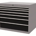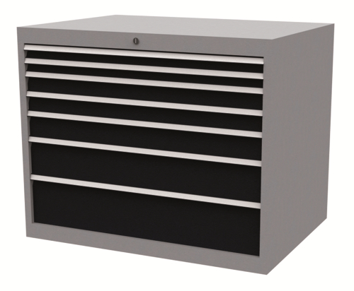 TÜV/GS zertifizierter Werkstatt-Schubladenschrank der LN-Werkstattserie SybaWork mit 7 Schubladen mit Zentralverschluss.