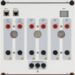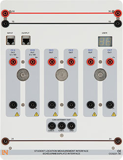Das Schülermessplatz-Interface dient dazu Spannungssignale wiederzugeben. Zusammen mit einem Lehrermessplatz kann so ein eigenes Netzwerk zur Übermittlung von Spannungssignalen aufgebaut werden. Systemspezifikationen Mobiles Messplatzinterface zur Wiedergabe von Spannungssignalen vom Lehrermessplatz. Datenübertragung über Ethernetkabel (2 x 1m CAT6-Kabel nach höchstem Industriestandard im Lieferumfang enthalten). Anzeige des Messplatzinterface. Anzeige für das Anliegen der Spannungsversorgung. Ausgangsbuchsen als 4mm Sicherheitsmessbuchsen ausgeführt. Belegung der Ausgänge: Zwei mal zwei Buchsen +/- 500VAnalogausgang Vier mal zwei Buchsen +/- 15V Analogausgang Eingebauter CAN-Transceiverbaustein Class-B Abmessungen: 228 x 296 x 125mm (BxHxT) Gewicht: 2 kg