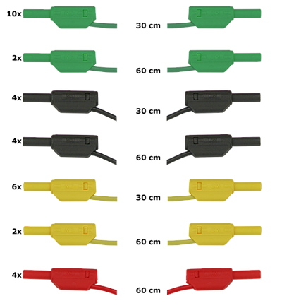Satz Sicherheitsmessleitungen mit stapelbaren 2 mm Lamellen-Steckern und hochflexibler, doppelt isolierter Leitung, bestehend aus: