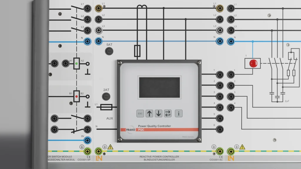 Die effiziente Nutzung elektrischer Energie und die Aufrechterhaltung der Netzqualität sind zentrale Herausforderungen moderner Stromnetze. Blindleistung, verursacht durch induktive Verbraucher wie Motoren, belastet die Netze zusätzlich und muss daher wirksam kompensiert werden. Mit dem PanelTrain-System von Lucas-Nülle vermitteln Sie Ihren Lernenden praxisnah die fundamentalen Methoden zur Analyse komplexer Verbraucher, zur Messung des Energieverbrauchs und zur Durchführung der manuellen und automatischen Blindleistungskompensation.