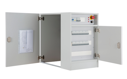 Alle Bedienelemente (Schlüsselschalter, Not-Aus-Taster, Phasenkontrollleuchten und Leistungsschalter) befinden sich nach dem Einbau in dem zugehörigen Unterschrank oben in einer frei zugänglichen Bedieneinheit. Alle sonstigen Einbauten wie Sicherungsautomaten zur Absicherung der Tischgruppen und der EDV-Versorgung, die Revisionssteckdose etc. befinden sich dann hinter einer abschließbaren Türe.