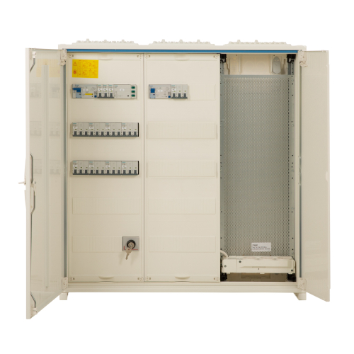 Energieverteilung mit Wandverteilerschrank, speziell für Labore mit der Laborsteuerung SybaNet.