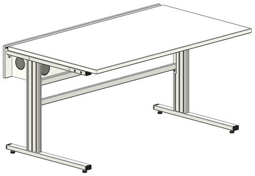Multifunktionstisch mit einem durch die verschiebbare Tischplatte abgedeckten, großen Kabelkanal zur Unterbringung von Steckdosenleisten, kleinen Netzteilen sowie IT- und Stromversorgungsnetzwerken. Für die Verwendung als für IT- oder Desktop-Labor-Arbeitsplätze. Alle Kabel (Monitor, Maus, Tastatur, Stromversorgung) können auf kurzem Weg aus der Kunststofflippendichtung zugeführt werden und ermöglichen aufgeräumte Arbeitsplätze. Der Kabelkanal ist mit einem Zylinderschloss verschließbar.