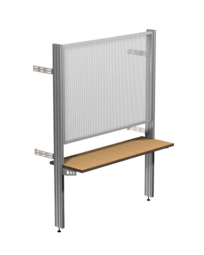 Hochwertiger SybaPro Steh-/Wandarbeitsplatz mit SybaPro-Aluprofilsäulen.