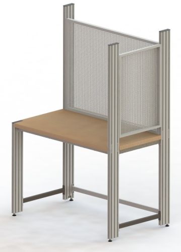 Hochwertige und  stabile Labor-Werkbank als Steharbeitsplatz für Montagearbeiten. Mit Aluprofil-Tischbeinen, kompatibel zu allen An- und Ausbauteilen des SybaPRO Systems. Tischplatte: 40mm starke Qualitäts-Buche-Multiplextischplatte (BB/BB) stabile und massive Ausführung mit 29 Lagen verleimtem Hartholz Gestell: Tischbeine aus Alu-Strangpressprofil mit Vielnutprofilierung 8 gleichwertige Nuten im Alu-Strangpressprofil (3 je Seite + 1 je Kopfseite) Nuten zur Aufnahme von industriegenormten Halterungen Innen jeweils zwei getrennte Kabelkammern zur Leitungsführung Integrierte höhenverstellbare Füße zum Ausgleich von Bodenunebenheiten Tischzarge aus stabiler, umlaufender Rechteckrohrkombination mit allen erforderlichen Bohrungen für Tischbein- und Unterschrankmontage Tischzarge mit zusätzlicher mittlerer Querstrebe Säurebeständige Epoxidharzbeschichtung von ca. 80µm, Farbe RAL7047 Aufbau: 3x Alu-Vielnutenprofilverlängerungen 830mm V2A Gitterwand hinten1230x700x20mm V2A Gitterwand seitlich 560x800x20mm Abmessungen: Abmessungen Werkbank 1300x800x870mm, Abmessungen gesamt mit Aufbau 1300x800x1700mm