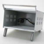 3HE-Tischgehäuse 230V inkl. Kaltgeräteanschluss Gehäuse aus Alu-Profil Einklappbarer Aufstellfuß Vorrichtung zum Befestigen der 3HE-Module Einschubbreite 48TE