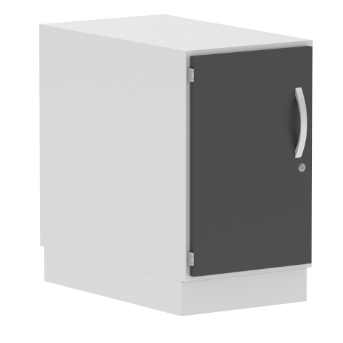 Bodenständiger Unterschrank zur Beistellung an Labortische (Erweiterung der Arbeitsfläche), bzw. zum Aufbau eines Arbeitsplatzes (Sockel für eine Tischplatte). 1 Flügeltüre links angeschlagen, abschließbar 1 Fachboden Korpus und Front aus 19mm starker hochverdichteter mehrschichtiger Feinspanplatte mit beidseitiger Kunststoffbeschichtung der Güteklasse E1 Korpus grau (RAL7035), Front anthrazit (RAL7016) Weitere Frontenfarben auf Anfrage möglich Abmessungen: 430x740x750mm (B x H x T)