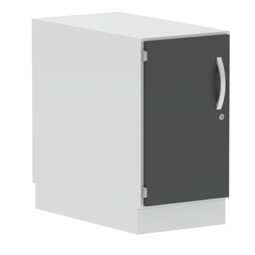 Bodenständiger Unterschrank zur Aufnahme von Muldeneinschüben Bodenständiger Unterschrank zur Montage links unter der Tischplatte Mit Nutmatten rechts und links zur Aufnahme von bis zu 10 Muldeneinschüben 1 Flügeltüre, links angeschlagen, abschließbar. Korpus und Front aus 19mm starker hochverdichteter mehrschichtiger Feinspanplatte mit beidseitiger Kunststoffbeschichtung der Güteklasse E1 Korpus grau (RAL 7035), Front anthrazit (RAL 7016) Weitere Frontenfarben auf Anfrage möglich Abmessungen: 390 x 688 x 770mm (B x H x T)