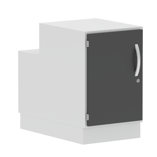Bodenständiger Unterschrank zum Unterbau speziell für Multimedia-Labortische 1 Flügeltüre links angeschlagen, abschließbar 1 Zwischenboden (fest) 1 Fachboden (variabel) Korpus und Front aus 19mm starker hochverdichteter mehrschichtiger Feinspanplatte mit beidseitiger Kunststoffbeschichtung der Güteklasse E1 Rückseitig abgestuft zum Unterbau unter Tische mit schiebbarer Tischplatte und integriertem Kabelkanal Korpus grau (RAL7035), Front anthrazit (RAL7016) Weitere Frontenfarben auf Anfrage möglich Abmessungen: 430x690x760mm (B x H x T)