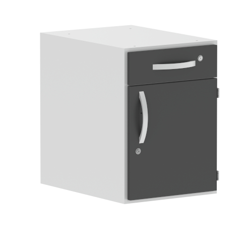 Hängeunterschrank für Labortische 1 Schublade 2HE Nutzbreite 330mm, Nutztiefe 480mm Metallschublade mit umlaufender Steckschlitzreihe Alle Schubladen mit 100% Vollauszug und Einzugsdämpfer (soft close) Korpus und Fronten aus 19mm starker hochverdichteter mehrschichtiger Feinspanplatte mit beidseitiger Kunststoffbeschichtung der Güteklasse E1 Korpus grau (RAL7035), Fronten anthrazit (RAL7016) Weitere Frontenfarben auf Anfrage möglich 1 Flügeltüre rechts angeschlagen 1 Fachboden Abmessungen: 430x590x580mm (B x H x T)