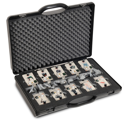 Kompaktes, multifunktionales und computergestütztes Trainingssystem mit Gerätesimulatoren zum Thema „Elektrische Installationstechnik /Wiederholungsprüfung für ortsveränderliche Geräte nach VDE0701 und VDE0702“. Zehn unterschiedliche Gerätesimulatoren mit Netzsteckern und Fehlerschaltern, ermöglichen die Untersuchung typischer, praxisrelevanter Gerätefehler, ohne den Nutzer zu gefährden. Alle Experimente bzw. Messübungen können sowohl im fehlerfreien, sowie im fehlerbehafteten Zustand durchgeführt werden. Der enthaltene interaktive Multimediakurs ist als Lernprogramm aufgebaut. Er ist auf die derzeit aktuellsten Normen (EN50678 /DIN VDE 0701 und EN 50699 /DIN VDE 0702) Stand 12/2020 und 09/2021 bezogen und enthält neben der Theorie alle Experimentier- und Prüfanleitungen und gibt Feedback zu den Messaufgaben. Die Gerätesimulatoren werden in einem Aufbewahrungskoffer übersichtlich gelagert. Im Mittelpunkt der Projekte steht die richtige Durchführung der Mess- und Prüfaufgaben, das Kennenlernen verschiedener Messprinzipien und -geräte sowie eine strukturierte Fehlersuche zu erlernen. Die Fehler sind innerhalb der einzelnen Gerätebausteine umschaltbar. Lieferumfang:Aufbewahrungsplatte für 10 GerätesimulatorenGerätesimulator BohrmaschineGerätesimulator KochplatteGerätesimulator WaschmaschineGerätesimulator FönGerätesimulator Kabeltrommel 25 mGerätesimulator PC-SchaltnetzteilGerätesimulator KaffeemaschineGerätesimulator SaunaofenGerätesimulator RasenmäherGerätesimulator Handy mit NetzteilAufbewahrungskofferBrowsersoftware und KurssoftwareTechnische Daten:Betriebsspannung :230 V / 50 HzGerätesimulatoren mit jeweils vier FehlerschaltmöglichkeitenAbmessungen der Aufbewahrungsplatte: 456 x 297 x 5 mmAbmessungen der Gerätebausteine: 60 x100 x 60 mmGewicht (zusammen): ca. 1,5 Kg