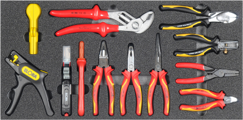 VDE-Werkzeugsatz 1, Zangensatz (12 Teile), Einlagengröße 300x600mm