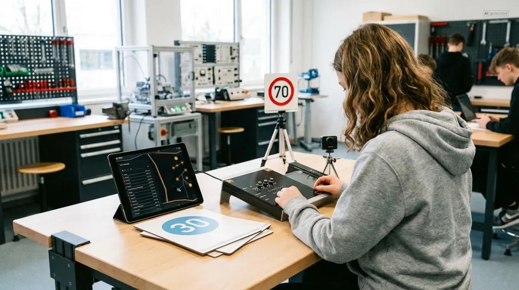 Mit dem UniTrain-System erreichen Lernende fundierte Kompetenzen in der Verkehrszeichenerkennung. Sie verstehen komplexe Zusammenhänge, analysieren Systemverhalten und beherrschen die Diagnose von Fahrerassistenzsystemen – essenziell für die moderne Kraftfahrzeugtechnik.