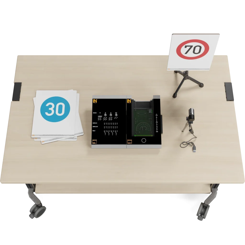Die Informationsflut im Straßenverkehr nimmt stetig zu. Intelligente Systeme entlasten Fahrende aktiv und erhöhen die Sicherheit. Mit dem UniTrain-Trainingssystem zur Verkehrszeichenerkennung tauchen Lernende tief in die Welt kamerabasierter Fahrerassistenzsysteme ein. Sie erwerben die Kompetenz, die Funktionsweise einer Frontkamera zu verstehen, die Verkehrszeichen erkennt und Informationen für eine Geschwindigkeitsregelung bereitstellt.