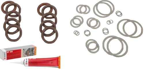 besteht aus: 5 x Radial-Wellendichtring 40x55x7 – A  5 x Radial-Wellendichtring 17x40x7 – A 2 x Passscheibe DIN 988 15x21x1 2 x Passscheibe DIN 988 15x21x0,5 2 x Passscheibe DIN 988 15x21x0,2 2 x Passscheibe DIN 988 12x18x1 2 x Passscheibe DIN 988 12x18x0,5 2 x Passscheibe DIN 988 17x24x0,5 2 x Passscheibe DIN 988 17x24x1 2 x Passscheibe DIN 988 28x40x0,5 2 x Passscheibe DIN 988 28x40x1 2 x Passscheibe DIN 988 10x16x0,5 2 x Passscheibe DIN 988 10x16x1 2 x Passscheibe DIN 988 55x68x0,1 2 x Passscheibe DIN 988 55x68x0,2 2 x Passscheibe DIN 988 55x68x1 1 x Motoren- und Gehäusedichtmasse DP300