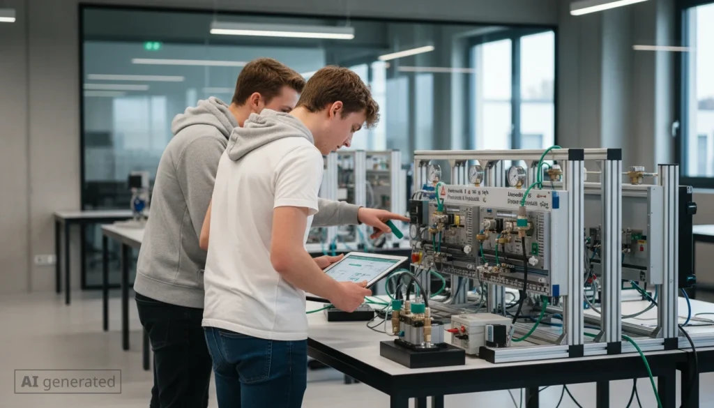Mit den Trainingssystemen von Lucas-Nülle erhalten Lernende eine praxisnahe Ausbildung in der Steuerung und Automation fluidtechnischer Systeme. Die Kombination aus realer Industriehardware und der digitalen Lernplattform RXlea ermöglicht ein interaktives und praxisorientiertes Lernen – von den Grundlagen bis zur hochkomplexen Prozesssteuerung.